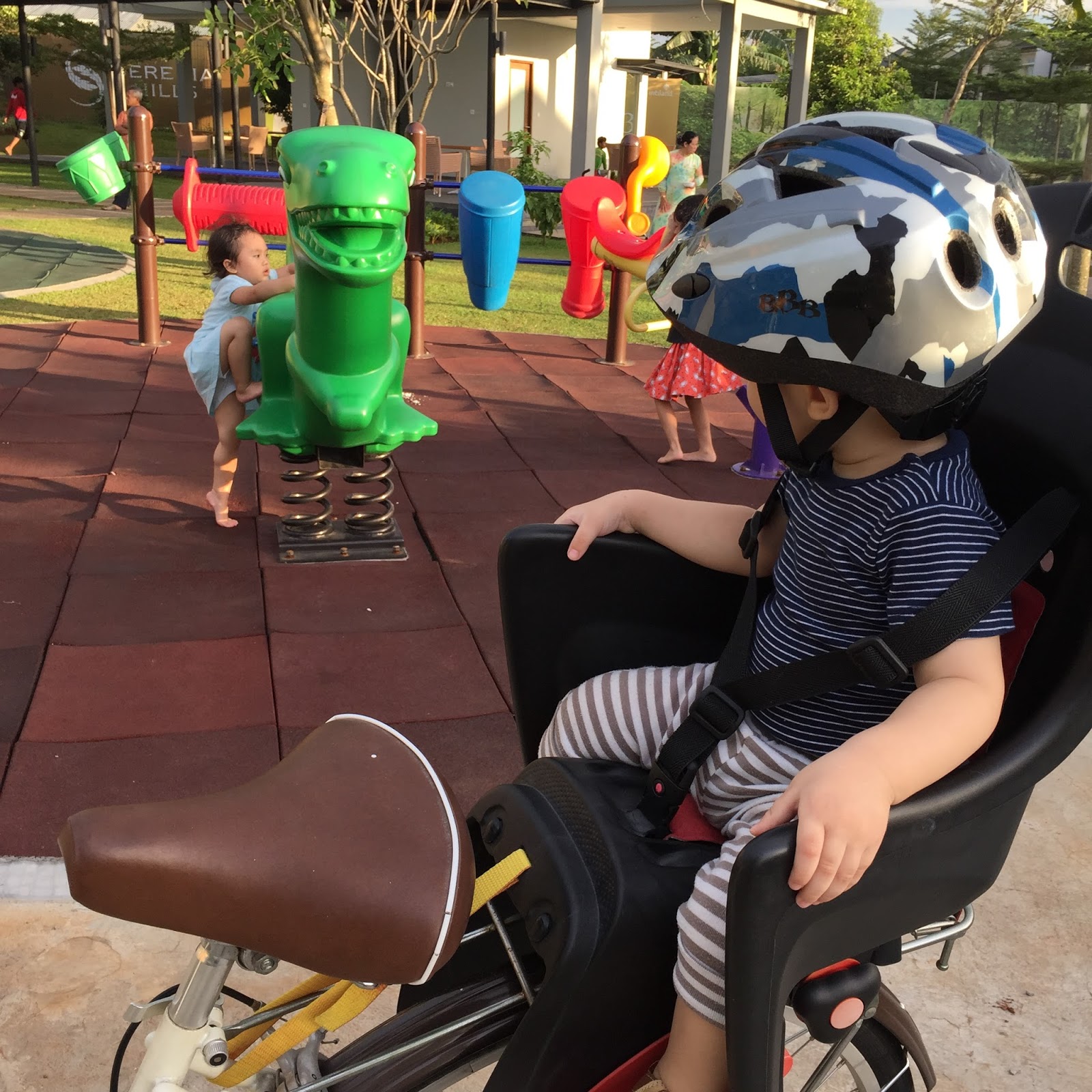 Sekarang sepedanya sudah nyaman di pakai dan kemarin pagi kita jalan-jalan keliling komplek rumah bertiga, abang Migu pakai scooter mommyluv bonceng Vino. :D